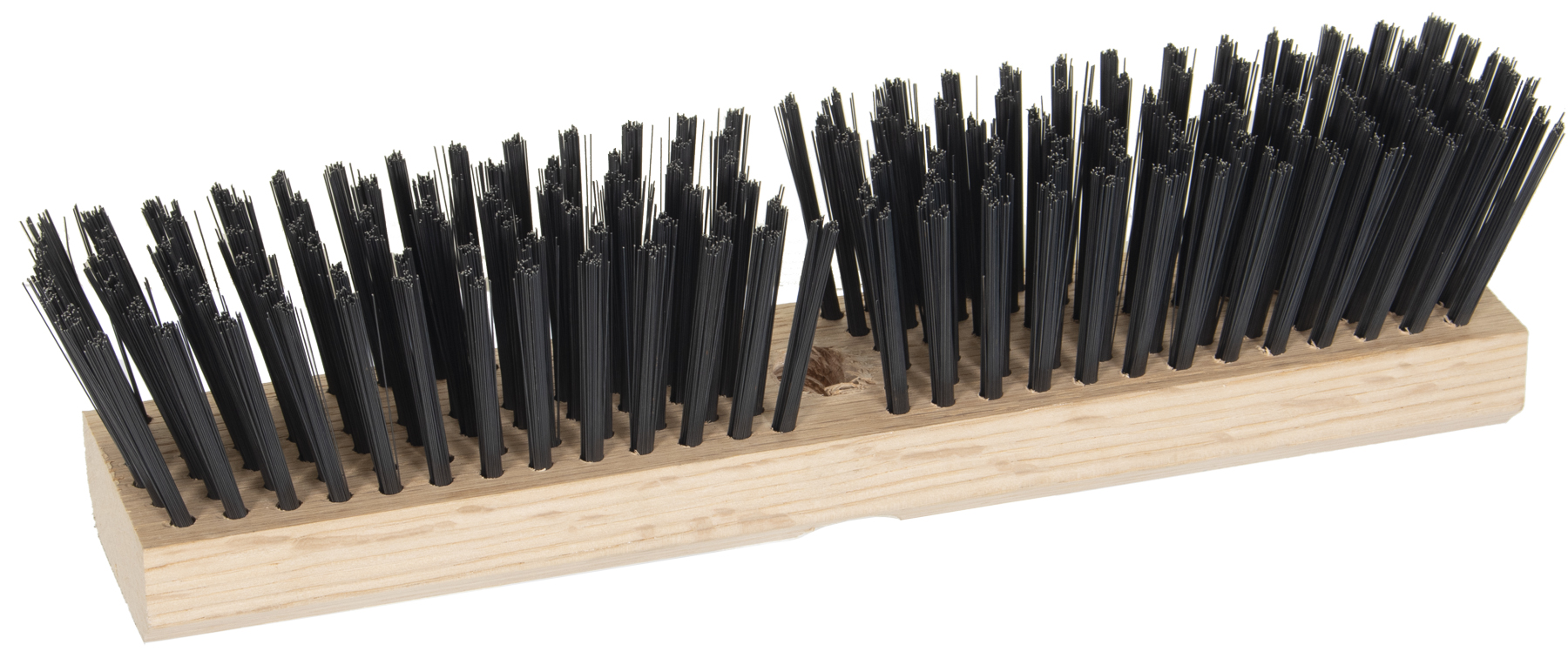 12in carbon steel wire deck scrub, .014 gauge. Staple set in smooth sanded hardwood block with one tapered and one tapered handle hole. 2in trim. ... More Info