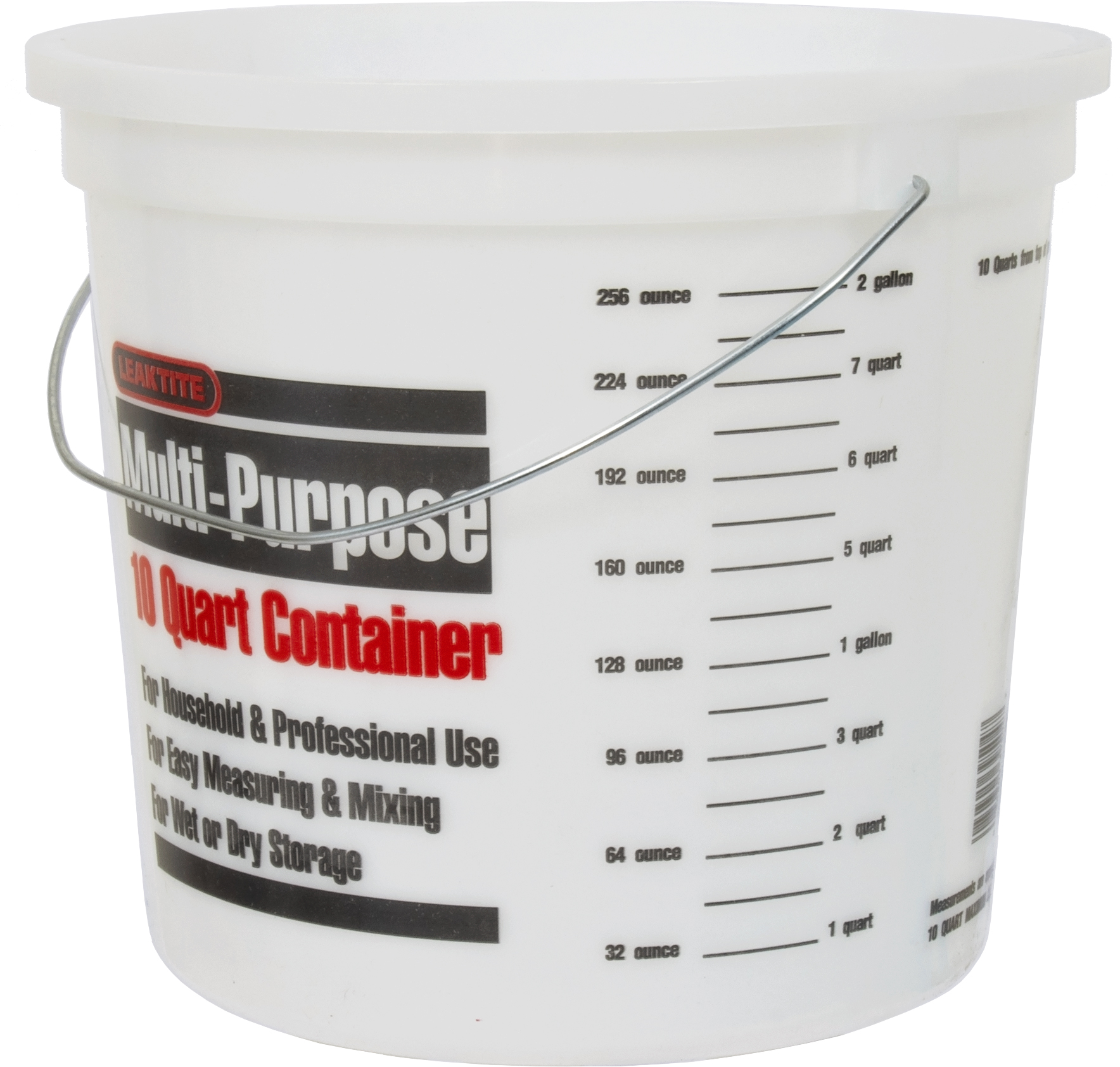 10 quart multi-mix container with handle. Visible quart & liter measure, solvent-resistant, re-useable, high-density polyethylene. 12/Ctn ... More Info