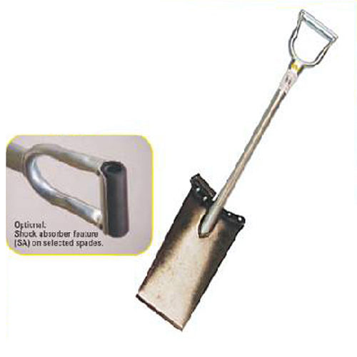 Our most popular model of spade. Made of aircraft-quality tubing. Super strong, rust-resistant, smooth and lightweight. Five year guarantee against breakage under normal use. Large all-tubular D handle for comfort.{{END}}