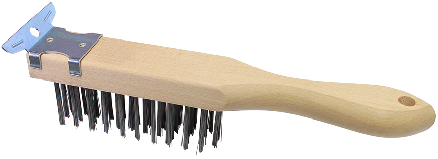 WIRE HAND BRUSHES Made in America with American steel. Smooth hardwood blocks. Extensively used to brush away castings, welds and metal chips. Also for removing rust, scale, grease and dirt from metal surfaces 12/Ctn