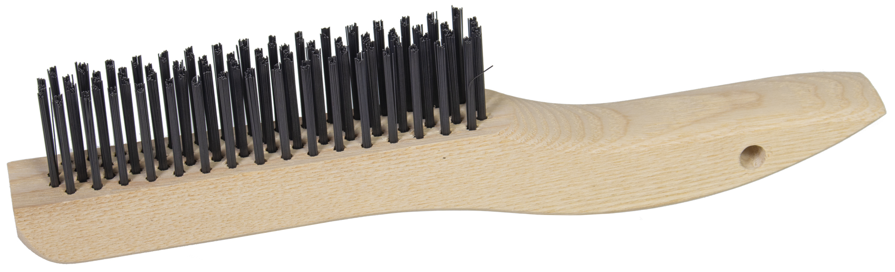 WIRE HAND BRUSHES Made in America with American steel. Smooth hardwood blocks. Extensively used to brush away castings, welds and metal chips. Also for removing rust, scale, grease and dirt from metal surfaces 12/Ctn