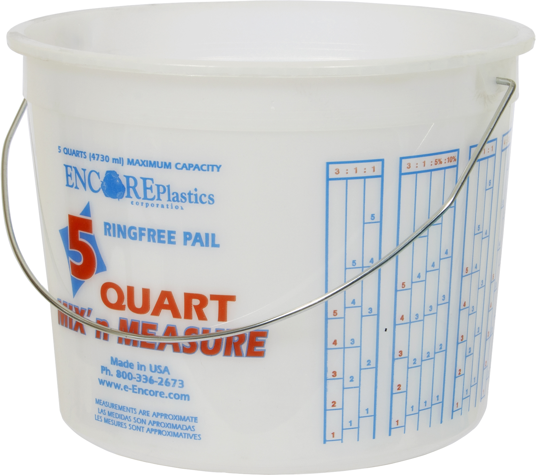 5 quart multi-mix container with handle. Visible quart & liter measure, solvent-resistant, re-useable, high-density polyethylene. ... More Info