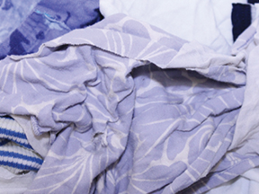 Pre-washed colored cotton knit rags, soft, lower lint.  Recycled.