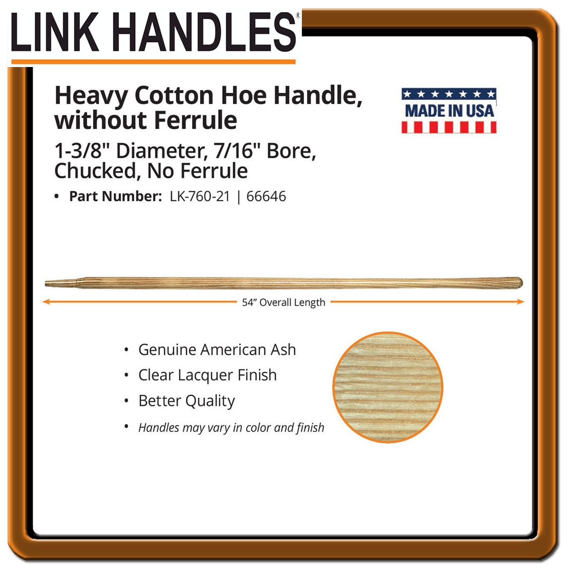 54In Heavy Cotton Hoe Handle without Ferrule, 1-3/8In dia., Chucked, 7/16In Bore